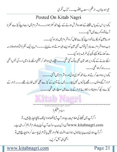 ان سب ویب،بلاگ،یوٹیوب چینل اور ایپ والوں کو تنبیہ کی جاتی ہےکہ اس ناول کو چوری کر کے پوسٹ کرنے سے باز رہیں ورنہ ادارہ کتاب نگری اور رائیٹرز ان کے خلاف ہر طرح کی قانونی کاروائی کرنے کے مجاز ہونگے۔